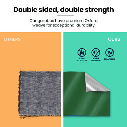 With UV and water-resistant materials, it offers reliable protection from sun and rain, making it ideal for weddings, markets, and outdoor gatherings. A durable steel frame and nylon joints ensure stability, while the included carry bag makes packing and storage effortless. Quick to set up and fold away, it’s built for convenience and versatility.