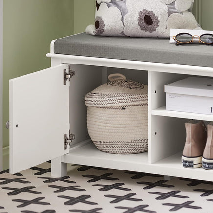 - This storage solution is perfect for organizing your home. It features two cubes with doors and a central storage compartment, plus an adjustable shelf to maximize space. Keep your items neat and tidy with this stylish and functional storage solution.