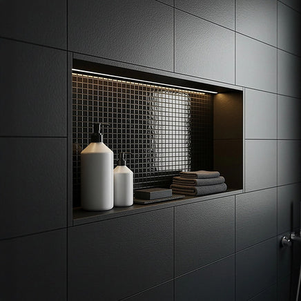 - Waterproof: Extremely water-resistant, this shower wall niche is perfect for areas prone to moisture or even immersed surfacesshowers, of course, but also bath surrounds, wet rooms, balconies, patios, garden water features, and external walls.