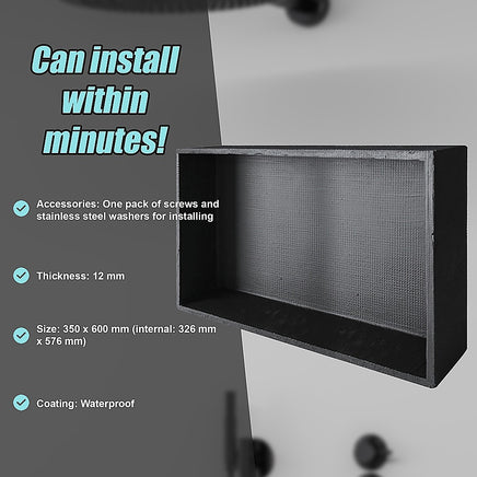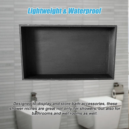 - Waterproof: Extremely water-resistant, this shower wall niche is perfect for areas prone to moisture or even immersed surfacesshowers, of course, but also bath surrounds, wet rooms, balconies, patios, garden water features, and external walls.