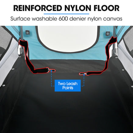 Your dog will enjoy a smooth, comfortable ride in the Tag-Along trailer. The spacious 267-litre cabin is covered in durable 600D nylon canvas with secure hook and loop fasteners that create a secure and comfortable passenger compartment for your best friend. The shell is rainproof to protect your furbaby from the elements.The cover features zip-up all-weather clear vinyl windows and sun-screening mosquito mesh. The floor padding is also covered in nylon canvas for easy care. It is removable, washable and offers your dog plenty of room to relax while you explore together.