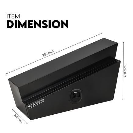 When you’re on the job, you need gear that’s built to handle the rough stuff. The Boximus 900mm Black Steel Under Tray Tool Box delivers just that — rock-solid storage that keeps your gear dry, secure, and right where you need it. Built from heavy-duty steel and finished with a tough black powder coat, it’s made to resist rust, water, and dust — no matter how hard the worksite hits. Dual support cables keep the lid steady, while the rubber seal locks out the elements. This 900mm pair set fits neatly under most ute trays, saving space without cutting corners on protection or strength.