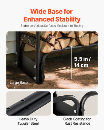 Unlike standard single-bar bases, our upgraded wide-frame base offers enhanced balance and strength. The outdoor wood rack stands firm on uneven surfaces and is less likely to tip over in harsh wind or heavy snow, offering a more secure solution for long-term wood storage.